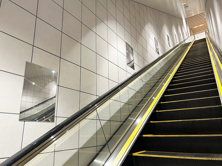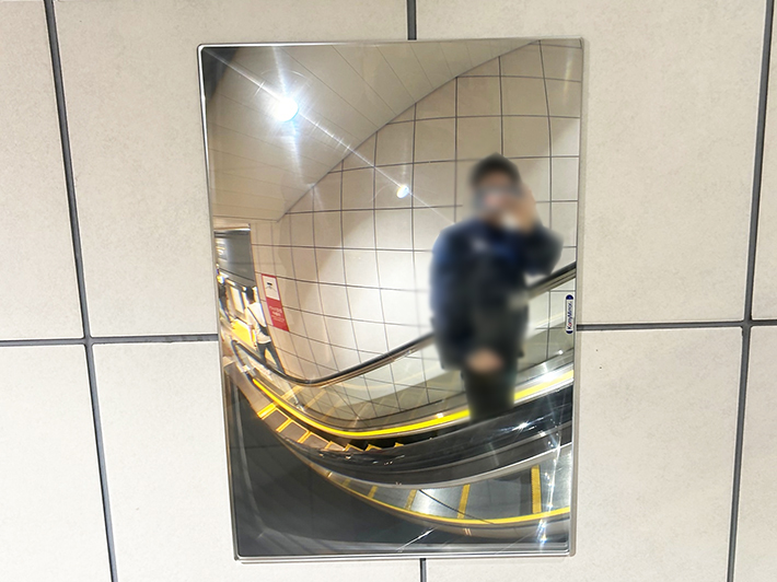 FFミラーの設置により、長いエスカレーターでも利用者が後方の状況を把握しやすくなることで、盗撮行為の抑止や盗撮被害の未然防止につながることを期待しています。